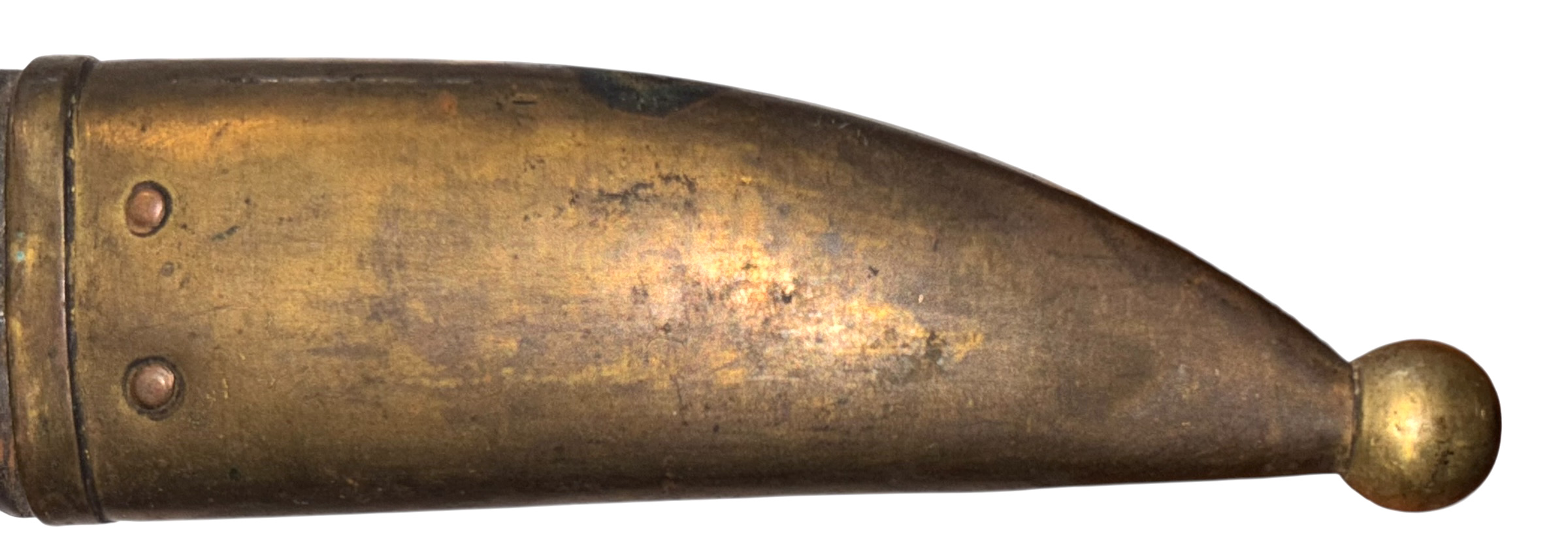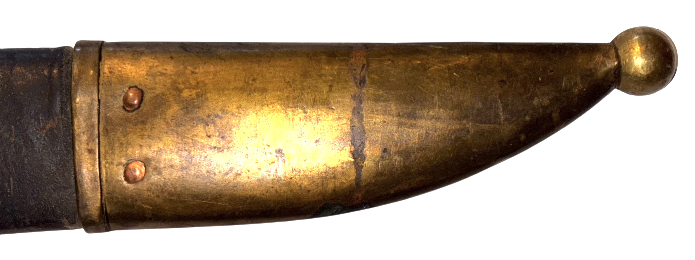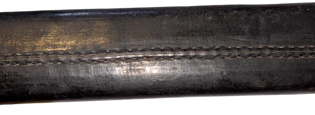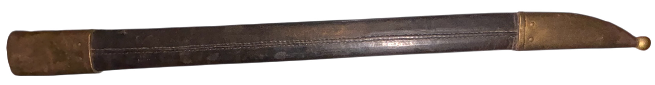 Well known by most collectors today, Pittman, by the 1850s, had been in the military goods business since the mid-1840s; he apparently had some business connections with Henry Dingee, as well as other period contractors. Pittman would later have multiple government contracts, during the Civil War, for infantry, cavalry and artillery accoutrements. This scabbard remains in overall excellent condition; the black bridle leather of the scabbard retains its complete, non-flaking, original finish; the brass throat and tip are in fine condition, as well. These scabbards are usually found in heavily used or relatively poor condition; additionally, this is the first that we have encountered with a Pittman stamping.