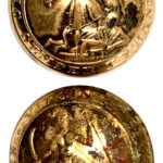 Excavated Confederate Clipped Corner Brass Belt Plate from Sailor’s Creek – We obtained this plate from the descendants of a long-time collector who had gotten it from a relic hunter who frequented the Sailor’s Creek battlefield area for years. The plate is a typical, sheet brass, simple Confederate, clipped corner plate; it retains the soldered tongue on the back of the plate, but like many of these plates, it is missing the belt bar, which was lost during the period of use – both soldered attachment areas are still visible on the back of the plate. The soldier, again like many of these plates we have encountered, punched two holes in the plate to attach the plate via twine or leather thongs to a leather or fabric belt. The plate has some minor period bends but remains in overall very good dug condition.