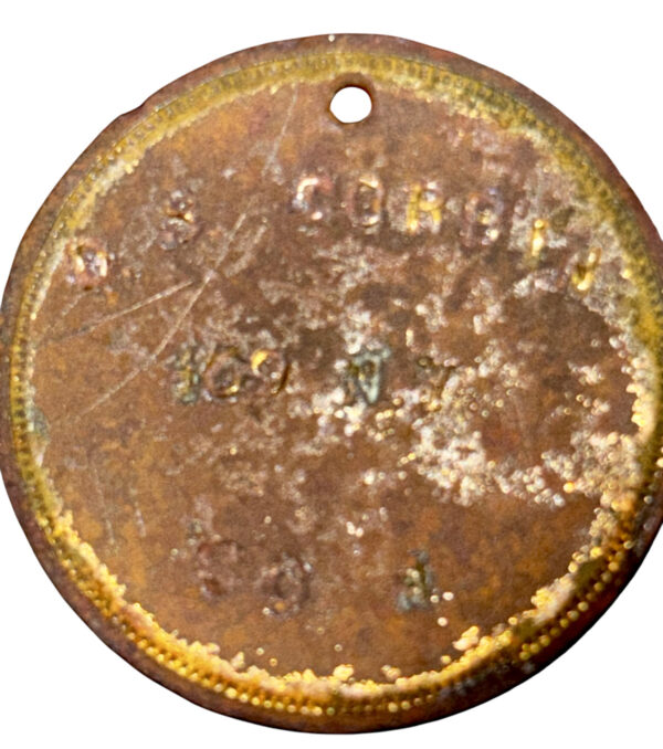 Excavated Early War “Against Rebellion / 1861” ID Tag – Daniel Corbin Co. A 169th NY Infantry