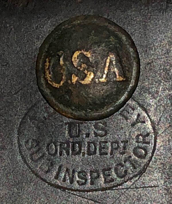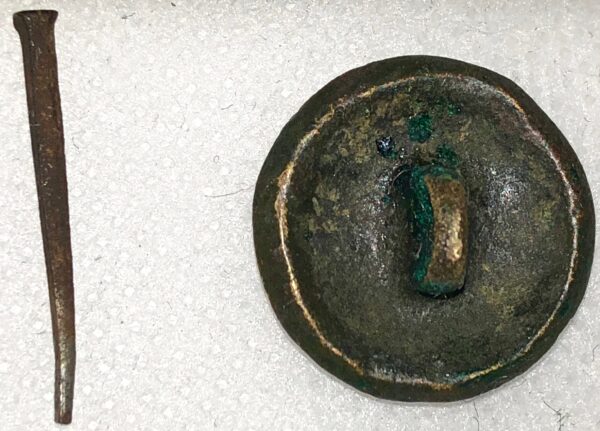 Rare Dug Solid Cast CSA Coat Button – This rare Confederate button remains in reasonably good condition, with some ground action. This is the first example of this uncommonly encountered button that we have had.