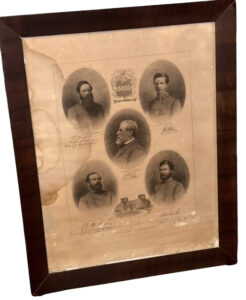 1869 Register of the Confederate Dead Hollywood Cemetery Richmond with Foldout Map – This rare book is entitled “Register of the Confederate Dead in Hollywood Cemetery”. It was published, in Richmond, by Gary, Clemmitt & Jones, in 1869. The book has paper boards or covers, which remain in relatively good shape, with one small front corner piece missing; the contents pages are complete and in good condition with some areas of minor water staining and foxing. The original fold out map of the Confederate section of Hollywood Cemetery, remains, also indicating the location of the commemorative, stone pyramid, designed by famed Confederate engineer, Captain Charles Dimmock. This is the only copy of this rare work we have encountered, outside museums and the Virginia State Library.