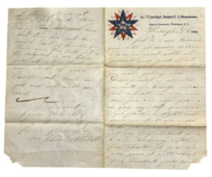 Early Civil War Commission of Lt. Charles P. Herring (Later a Brig. General) in the Gray Reserves of Philadelphia Signed by Pennsylvania Wartime Governor Andrew Curtin – This elaborately executed commission was issued to Lt. Charles P. Herring as a member of the Philadelphia Gray Reserves, on April 24, 1861. The commission has the wax, state seal of Pennsylvania, superimposed over red, white and blue ribbons. Governor Andrew G. Curtin signed the commission in the upper right corner of the document. Lt. Herring would be commissioned, in August of 1862, into the Field and Staff of the 118th Pa. Infantry; he would remain in the army until June of 1865. During his service, Herring was wounded twice – Fredericksburg (12/13/62) and at Dabney’s Mills, Virginia (2/6/65); the second wound would result in the amputation of Herring’s right leg. Herring was promoted several times during his service – Lt. Col., later Colonel and Brigadier General (the latter two by brevet); the brevet to Brig. General was awarded for “gallant and meritorious conduct in the battle of Hatcher’s Run, Va.” This is an impressive commission for a brave, decorated officer; it remains in superior condition and has been archivally mounted in a period frame.