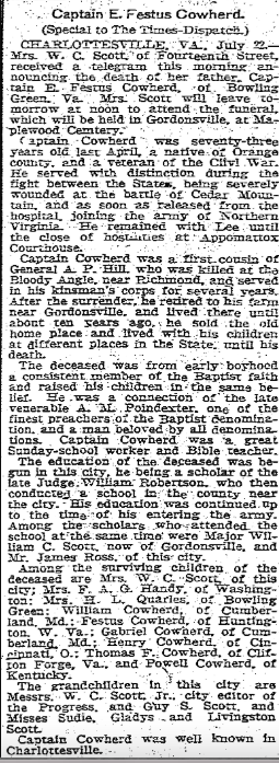 According to VMI records, while residing in Lexington, Major GILHAM and his wife Cordelia A. GILHAM (1826-1913) had 7 children, 3 born after moving to Virginia. Their daughter Emma Hayden GILHAM, born in 1855, was later one of Richmond’s débutantes at the city’s social “Germans” and married William Nelson Page, a civil engineer who became co-founder of the Virginian Railway. One of the GILHAM’s sons, Julius Hayden GILHAM (April 6,1852 – March 10, 1936), is buried in Richmond’s Hollywood Cemetery, as are Emma and William Page.