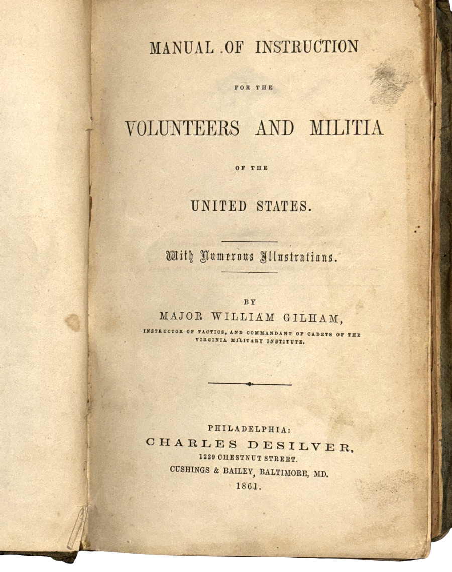 In response to the raid on Harper’s Ferry, Governor Wise ordered Gilham to write a manual to train volunteers and militia. Finished in the fall of 1860, it was entitled Manual of Instruction for the Volunteers and Militia of the United States and was initially published in Philadelphia.
