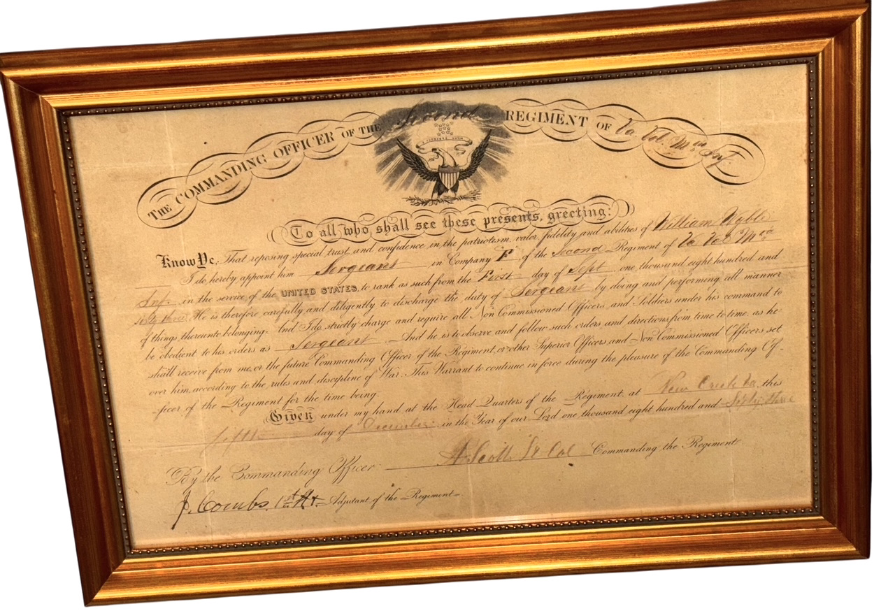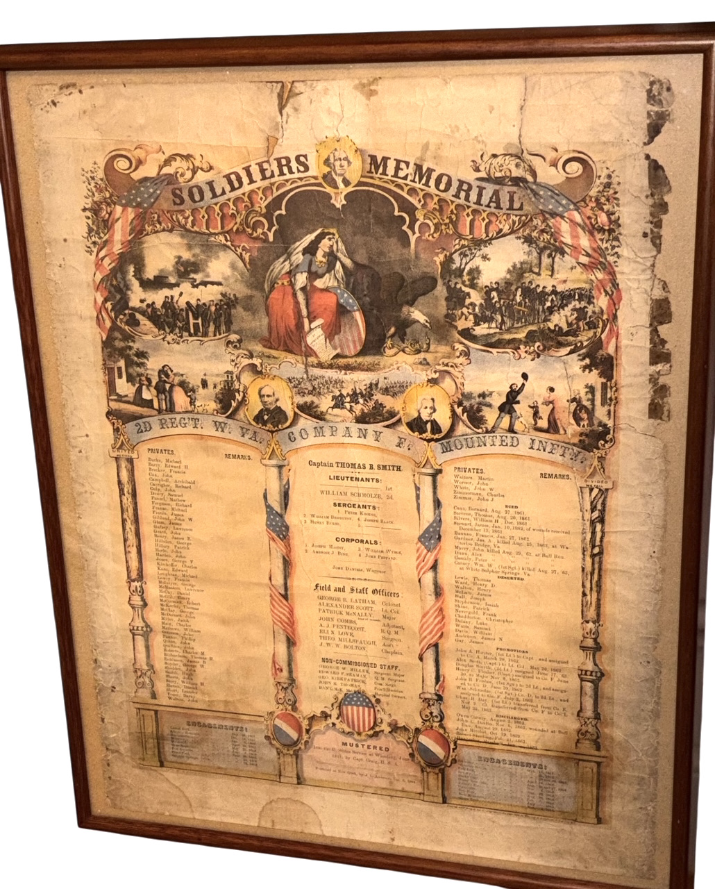 Id’d Grouping Civil War Soldier – Sergeant William Wyble Co. F 5th West Virginia Cavalry – William Wyble enlisted at the rank of Sergeant, in early 1864, into Co. F of the 5th West Virginia Cavalry. According to an online citation by the Greenwood Cemetery Association submitted by Diane Nichols: “William Weible (also Wyble, Wible) is buried in Greenwood Cemetery, O’Hara Township, Allegheny Co., PA with his brother John, who was also a Civil War veteran. The graves are in Section 5, Range 13, Lot 2, a family plot in a section devoted to many veterans of different wars. He lived in nearby Etna, close to where he grew up, and worked in one of the rolling mills. His wife was named Catherine and they had at least 4 children. His father’s name was Rudolph, a shoemaker from Switzerland. His mother, also from Switzerland, was named Elisabeth. William was born about 1840 and died in Etna at 625 Butler Street of arterio-sclerosis at age 80 on 8 April 1921.”