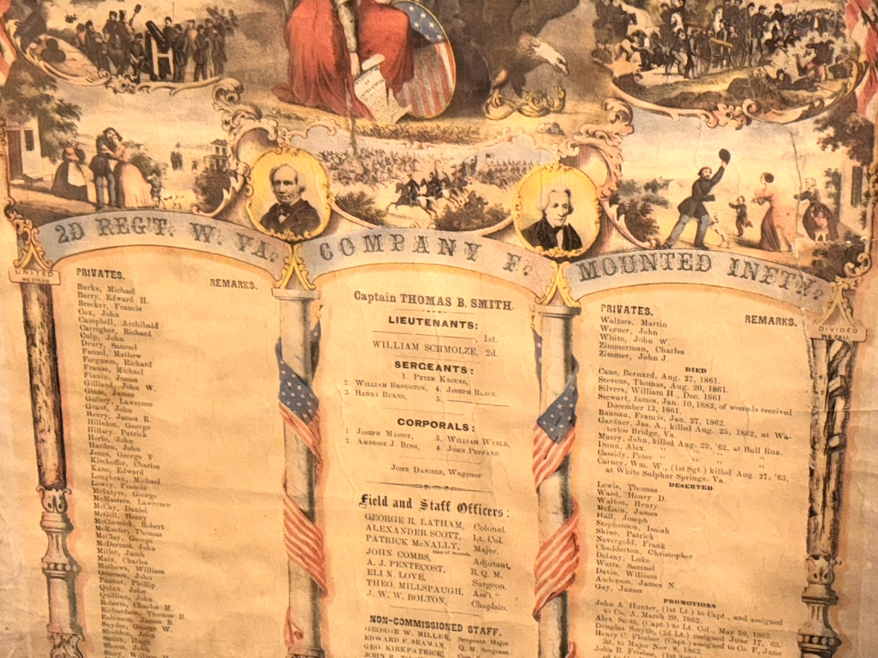 - Company “F” was recruited in Pittsburgh and not accepted by its home state. It moved to Wheeling and was mustered in on June 24, 1861.