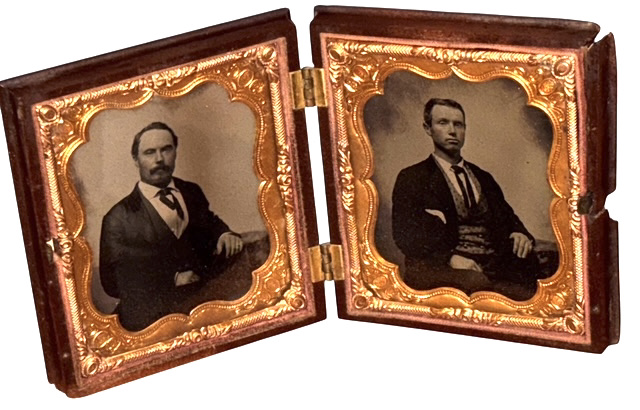 - Two tintypes of unknown war period civilians in a full thermoplastic case (case cracked)