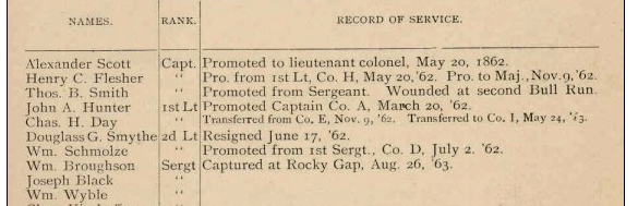 Organized at Wheeling, W. Va., October 30, 1861. Companies “A,” “B,” “D” and “E” moved from Wheeling to Little Kanawha, Wirt County, W. Va., October 13, and duty there till November 2, when rejoined Regiment at Romney. Regiment left Wheeling for Romney, W. Va., November 9, 1861, and duty there till January 10, 1862. Attached to Railroad District, West Virginia, to January, 1862. 3rd Brigade, Landers’ Division, Army Potomac, to March, 1862. 3rd Brigade, Shields’ Division, Banks’ 5th Army Corps, and Dept. of the Shenandoah, to May, 1862. 4th Brigade, Shields’ Division, Dept. of the Rappahannock, to June, 1862. 4th Brigade, 2nd Division, 3rd Army Corps, Pope’s Army of Virginia, to September, 1862. 2nd Brigade, Whipple’s Division, Military District of Washington, D. C., to October, 1862. Wheeling, W. Va., to December, 1862. Cumberland, Md., September, 1862. North Mountain, Defences of Upper Potomac, 8th Army Corps, Middle Dept., to March, 1863. 4th Brigade, 1st Division, 8th Army Corps, to June, 1863. Campbell’s Brigade, Scammon’s Division, West Virginia, to December, 1863. 2nd Brigade, 2nd Division, West Virginia, to April, 1864. 2nd Brigade, 1st Infantry Division, West Virginia, to October, 1864. Cumberland, Md., to December, 1864.