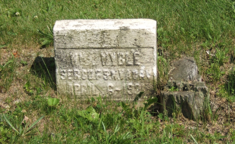Additional background information reveals that Wyble was born November 22, 1841 in Etna to Rudolph Weible and Elizabeth Fannings, both of Switzerland. At the beginning of the Civil War, he enlisted in Pittsburgh with a regiment that was intended for service for the state of Pennsylvania, but the Pennsylvania quota was full, and the regiment became instead the 2nd West Virginia Infantry. They were mustered into service at Wheeling on June 24, 1861. The regiment took part in battles on the summits of the Allegheny Mountains in Virginia, and were at the second Bull Run. The men were eventually mounted and the regiment was re-designated the 5th West Virginia Cavalry. William was promoted to Sergeant and mustered out with the regiment on November 28, 1864. He married his wife Catherine after the war. They lived in Etna and raised at least 4 children while William worked in a rolling mill. He died at age 80 years 5 months and 15 days in Etna at #25 Vilsack Street. He died of arterio-sclerosis and hepatic cirrhosis. Buried on April 9th by Jacob Miller of Etna. The entire listing of people in the lot is spelled Weibel in the Lot Book. The lot is owned by John and William Weibel.