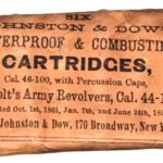 Confederate Side Knife – This somewhat crudely fashioned side knife remains in overall, very good condition; there is a small piece of wood missing at the very top of the grip. The knife has a reasonably well crafted, spear point type blade with a flat ricasso; the blade is affixed to the wood grip via the blade tang inserted into the grip, with an iron ring used to tighten the tang in place. There is a crude, brass, diamond-shaped, somewhat diminutive guard between the iron tang ring and the knife’s blade. The wooden grip expands into a bulbous palm-held area and appears to be made of oak. This knife is quite similar to the North Carolina side knife described and pictured on page 252 in the significant work on Confederate knives: “Confederate Bowie Knives” by Jack Melton, Josh Phillips and John Sexton.