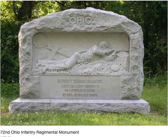 OHIO SEVENTY-SECOND INFANTRY (Three Years) Seventy-second Infantry. – Col., Ralph P. Buckland ; Lieut.-Cols., Herman Canfield, Leroy Crockett, Charles G. Ea- ton; Majs., Eugene A. Rawson, Samuel A. J. Snyder. This regi- ment was organized in the state at large from Oct., 1861, to Feb., 1862, to serve for three years. It was equipped fully, and in February was ordered to Paducah, Ky. On April 4 Cos. B and H, while reconnoitering, became separately engaged with Confederate cavalry, Maj. Crockett and 2 or 3 men of Co. H being captured and several were wounded. Co. B was surrounded, but fought for an hour against great odds, when it was saved by the arrival of other companies though it lost 4 men wounded. The regiment was at the front constantly in the battle of Shi- loh and on the second day participated in the final charge which swept the enemy from the field, resting that night in the camp which it had abandoned the day before. The regiment lost 15 killed, 73 wounded and 46 missing. In the siege of Corinth it bore a conspicuous part and its losses were trifling in ac- tion but terrible by disease. It participated in the battle at Jackson, Miss., May 14, 1863, and on the next day continued the march toward Vicksburg, where it participated in the assaults on the Confederate works on May 19 and 22, after which came the labor of the siege. It was finally thrown out on the advance picket line and continued to hold that position until the sur- render. It then moved against Gen. Johnston at Jackson, and after the battle there pursued the Confederates to Brandon, where it was in an engagement. In Feb., 1864 it took part in the expedition to the Tallahatchie river, this really being a part of Gen. Sherman’s Meridian expedition. The regiment vet- eranized and was furloughed home, and then resumed its duties in the field. In June it formed part of an expedition against Forrest, encountered him at Brice’s cross-roads, Miss., and in the unfortunate affair 248 of the regiment were killed, wounded or captured – the greater portion captured – and of these very few ever returned to the regiment. On another expedition in the direction of Tupelo the casualties in the regiment were 21 men wounded, 5 of them mortally. In Dec., 1864, the regiment was on a reconnaissance and became warmly engaged with a band of Confederates, losing 11 men killed and wounded. On the first day of the battle of Nashville it participated in a charge, in which 350 prisoners and 6 pieces of artillery were captured. At night it was sent to Nashville with prisoners, but returned in time to take part in the fight the next day and was engaged in the charge on Walnut hills. The regiment was then sent to Louisiana and later participated in the siege of Spanish Fort, near Mobile, Ala., losing 1 man killed and 3 wounded. It then returned to Mississippi and was mustered out at Vicksburg, Sept. 11, 1865. Source: The Union Army, vol. 2 ********************************************************************************** Report of Capt. Samuel A. J. Snyder, Seventy-second Ohio Infantry. NEAR MARKHAM’S, July 30, 1863. COL.: I have the honor to submit the following report of the operations of this regiment, which composed a part of the brigade under your command, in the expedition to Brandon, Miss., July 19, 1863: Making no mention of the march, I would state that the part taken by the regiment was unimportant. When the line of battle was formed, and skirmishers thrown forward from the Eighth Iowa and One hundred and fourteenth Illinois, I was ordered forward to support those regiments on the left of the road. The ground over which my command had to advance in battle order was very rough and traversed by deep cuts, yet the advance was in good order and my line was not once broken. After advancing in support for about 1 mile, I was ordered to fill the interval between the Eighth Iowa and One hundred and fourteenth Illinois, when the line again advanced, but met no enemy, he having taken advantage of a hard rain-shower to retreat. Upon arriving at Brandon, my regiment was thrown forward to support the skirmishers in the eastern limits of the town, when we bivouacked for the night. On the following day, the 20th, in accordance with your orders, I proceeded to the railroad depot, and took part in destroying the track. The march back to Jackson was very severe on my men, as it was made in the heat of the day and was very rapid. Officers and men of my regiment all behaved nobly and did their duty to the letter. There were no casualties in this regiment. I have the honor to be, colonel, your very obedient servant, SAML. A. J. SNYDER, Capt., Comdg. Seventy-second Regiment Ohio Volunteer Infantry.