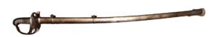 Model 1840 Heavy Cavalry Saber by Ames – These sabers, the pre-Civil War precursors to the M1860 Light Cavalry Saber, were based on the French M1822 Hussar’s saber. The M1840 was nicknamed the “Wristbreaker” because of its heavy, flat-backed blade, designed for slashing one’s opponent; the grip on the M1840 has less of a palm-contour, as compared to the M1860. The M1840 was first introduced to replace the U.S. M1833 Dragoon Saber, an iron mounted saber that was disliked by U.S. mounted soldiers. The M1840 Heavy Cavalry saber saw use during the Mexican War; the main U.S. manufacturing contractors were: Ames, Horstmann and Tiffany, amongst others; there were many made by the German contractor S&K, as well. At the onset of the Civil War, although manufacturing of the M1840 ceased in 1858, many were issued to U.S. Cavalry troops, as the production of the M1860 was just being ramped up.
