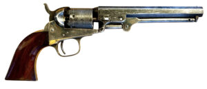 Civil War Issued 4th / 5th Model .54 Cal. Burnside Carbine – Considered to be one of the most important cavalry arms of the Civil War, the 4th (in actuality the same as the 5th Model – although the 5th Model does have a screw in the right frame to prevent the breech assembly from dropping out of the frame when lowered to chamber a cartridge). This example remains in overall very good condition: overall plum gray color to metallic elements; saddle ring and bar in place; firing mechanisms functional; clean bore with considerable rifling remaining; both butt stock and fore stock in good condition, with no cracks; all correct markings: “CAST STEEL” on the barrel, in front of the rear site, “BURNSIDE PATENT / MODEL OF 1864” with serial number “2529” on the top of the receiver housing, “BURNSIDE RIFLE CO / PROVIDENCE R.I.” on the lock plate, U.S. inspector’s cartouche on the left side of the wrist of the stock.