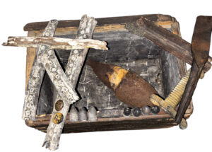 Burnside’s invention employed a rotating block, released by a loading lever that was activated by a hinged, clamping catch. It chambered a unique .54-cal. cone-shaped brass cartridge with a thick, rounded belt (there were also some earlier, coiled cases, sans belt) at its mouth and a small hole in the base that allowed ignition from a separate percussion cap. The round was loaded, base down, into the chamber. Next, the lever was closed and the block locked in place with the belt halfway between the chamber and barrel, providing an excellent seal.