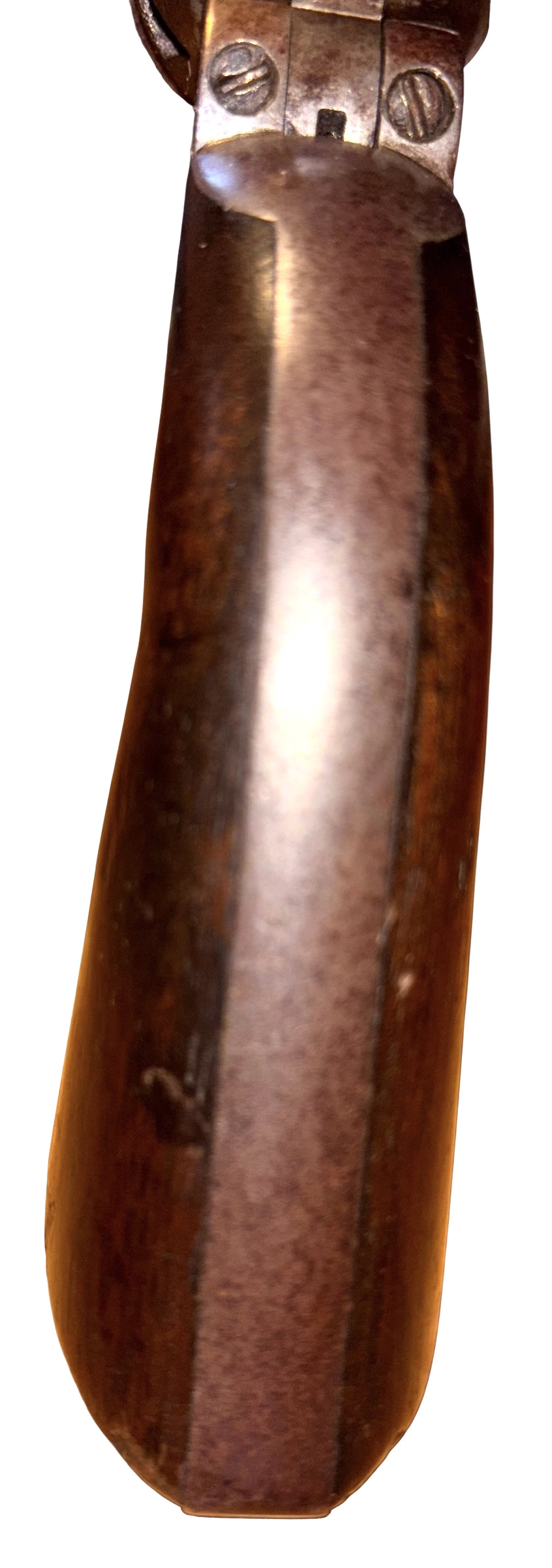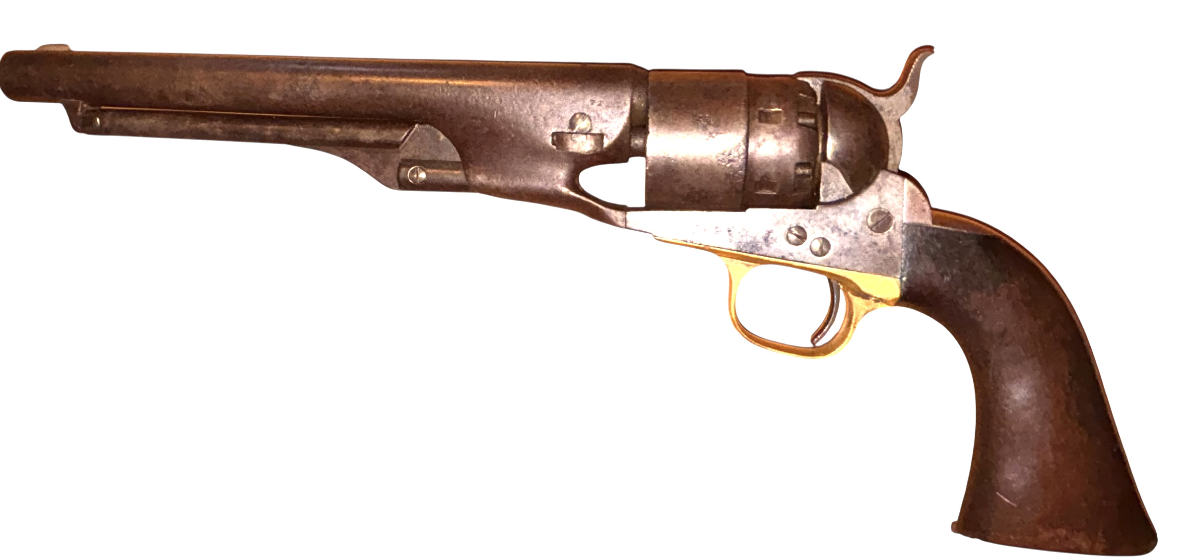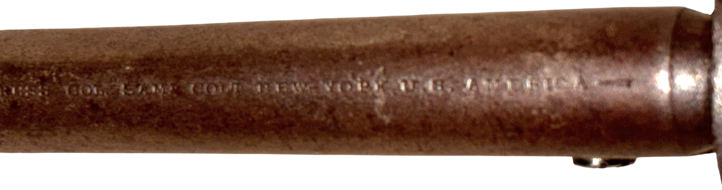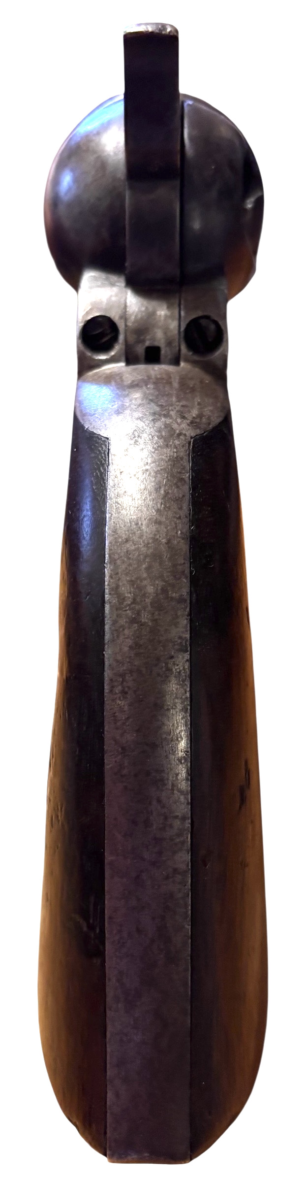 The cylinder roll scene depicts a battle between the Texas Navy and the Mexican Navy. The Colt Army ranks third in the total production by Colt of percussion revolvers; it was the most significant revolver utilized by Federal troops during the Civil War, with over 125,000 acquired by the Federal Government, during the war. This is an excellent example of the storied 1860 Army; it remains in overall very good condition, with crisp action, an appealing plum gray finish and good rifling remaining in the bore. The walnut grips retain most of their original varnish.