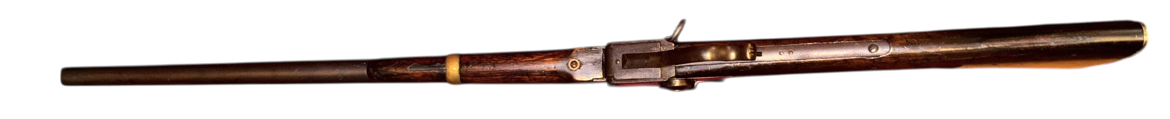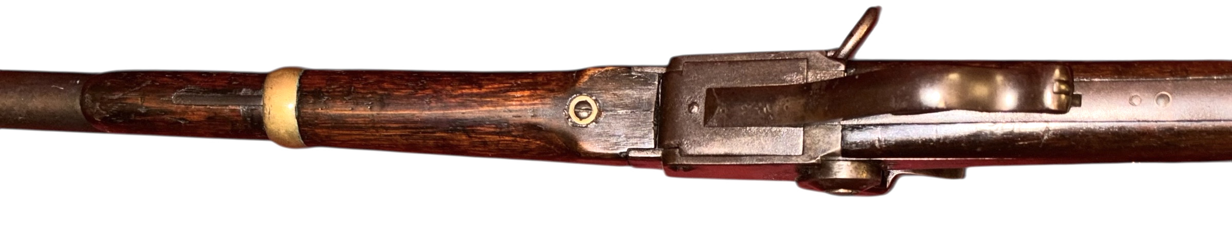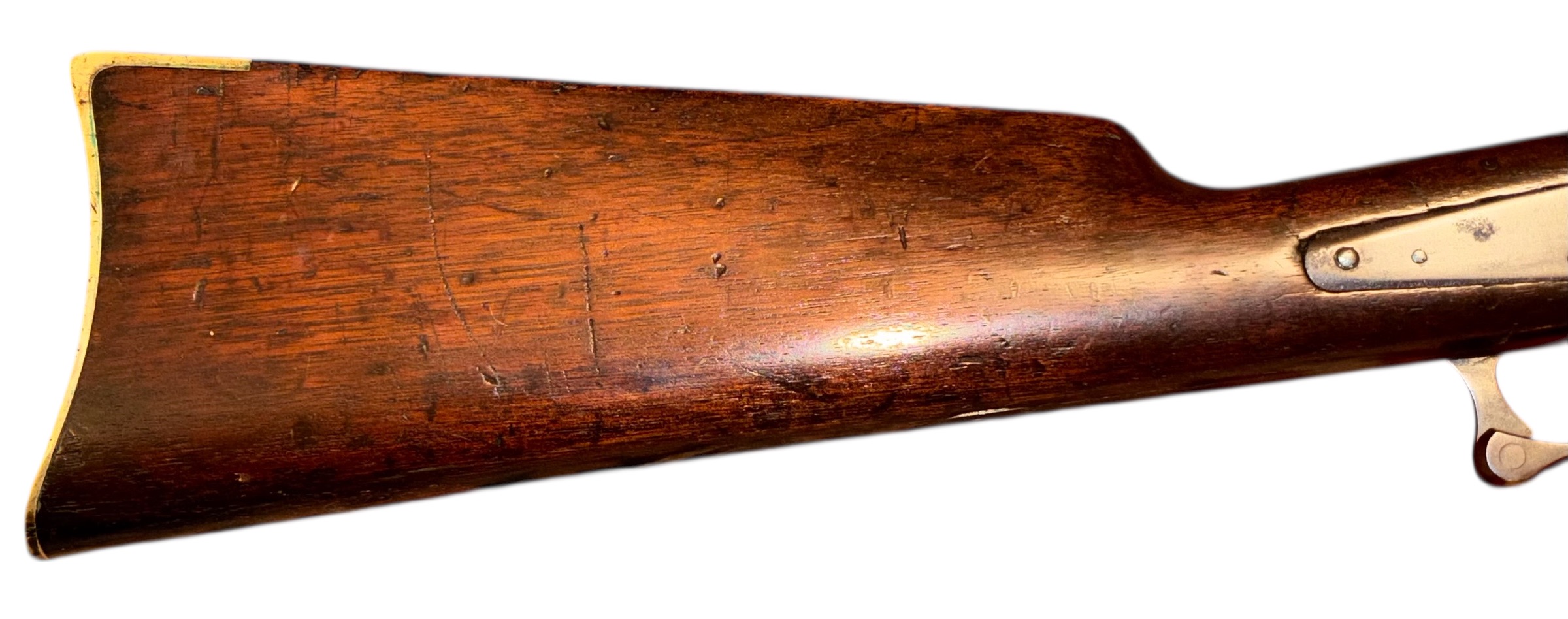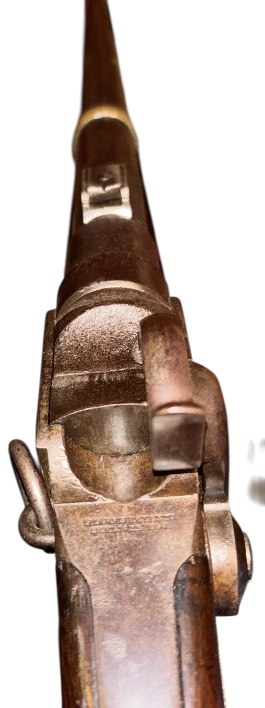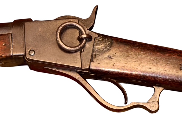 Civil War Period Starr Percussion Carbine – This Starr carbine is an excellent example of a Civil War period carbine for which the Federal Government contracted just slightly over 20,000, mid-war; by 1863, shipments of the Starr carbines were starting to be delivered, with the balance of the shipment completed by August of 1864. The serial number, which is stamped in the breech block, appears to be 18,985, indicative of one of the latter group of carbines delivered to the government. These carbines were breechloading, .54 caliber weapons, which operated as single shot firearms, with a combination trigger guard and lever that dropped the breechblock for chambering a round. This carbine is in overall very good condition – it retains a considerable amount of original bluing on the barrel and some casehardening on the receiver and lock; both brass elements – the butt plate and barrel band – remain in excellent condition with pleasing aged patinas; the walnut butt stock and fore stock’s finish remains in excellent condition with only some very minor period use blemishes; the firing action is strong; both sights remain; the bore has a considerable amount of rifling remaining. All of the correct markings are readily visible: the barrel, in front of the rear sight, is stamped: “STARR ARMS CO. YONKERS, N.Y.”; the upper tang of the receiver is stamped: “STARR’S PATENT / SEPT. 14TH 1858”; single letter sub-inspector stamps appear on various parts of the carbine. Starr carbines would see service with these Union cavalry regiments: 24th NY, 11th Missouri, 5th Kansas and the 1st Arkansas. The inventor of these carbines and Starr pistols, both used during the Civil War, was Ebeneezer Starr, son of famed gunmaker Nathan Starr, Jr. During war period government tests, Federal agents rated the Starr as better than the Sharps carbine.