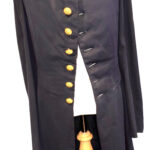 Pre-Civil War to Early Civil War U.S. Navy Ensign’s Wheel Hat – This is the first of this type of U.S. Navy hat that we have had or even encountered. The hat is constructed of a fine, indigo-dyed, English broadcloth wool, with a black lacquered, leather, curved bound brim; there is a bullion faux chinstrap, with two pre-war, U.S. Navy cuff buttons at either end; affixed to the front of the cap is a pre-war, bullion, U.S. Navy Ensign rank badge. Uniquely, the interior of the hat is completely lined with a high quality, burgundy colored, Moroccan type leather, perhaps used to provide some protection from salt water; the sweat band is made of the same leather; embossed on the interior of the leather crown is the following: