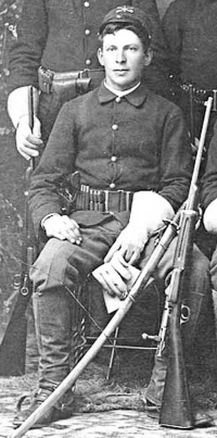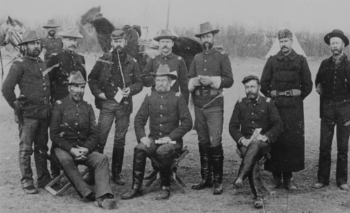 U.S. Pattern of 1886 Cavalry Gauntlets – Quartermaster Marked and Name of Soldier Inked in the Cuff – This pair of late Indian War gauntlets remain in overall very good condition, exhibiting period wear and use. The gauntlets are made of brushed, goatskin and utilized cotton thread for the welts in the seams of the thumbs and finger areas. Silk thread was utilized for the decorative stitching on the cuffs and the three welts on the back of each hand. Inside the right cuff is stamped: