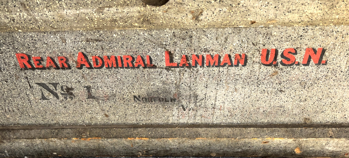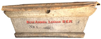 Sea Trunk of Admiral Joseph Lanman Captain of the USS Minnesota during the Bombardment of Ft. Fisher – This trunk was the possession of Joseph Lanman, who had an over 40-year career in the U.S. Navy: Appointed Midshipman from the State of Connecticut, January 1, 1825; Passed Midshipman June 4, 1831; commissioned Lieutenant March 3, 1835; Commander September 14, 1855; Captain July 16, 1862; Commodore August 29, 1862; commissioned Rear-admiral December 8, 1867. During the Civil War, Lanman commanded the USS Saranac in the Pacific fleet and the USS Minnesota in the North Atlantic Blockading Squadron; in command of the Minnesota, he participated in the attacks on Fort Fisher. After the war, he commanded the South Atlantic Squadron until his retirement in 1872 (Additional information about Lanman’s naval career is enumerated below).