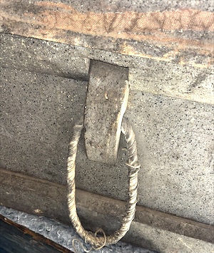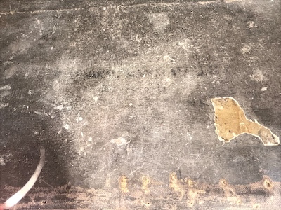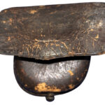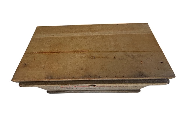 Stenciled on the sail cloth cover, on the top of the trunk, appears to be Lanman’s rank and name. The trunk is six-board, dovetailed in construction; it has its original strap hinges and has routed separator channels on all four of the interior sides. Both original beckets with their period rope handles remain intact. The sail cloth cover is in good condition, although somewhat soiled from use; there is a torn section on the back side of the cover. We assume that this trunk saw service during Lanman’s pre-Civil War and Civil War career, as he was appointed to the rank of Admiral after his participation in the bombardment of Ft. Fisher and prior to his assumption as commandant of the Portsmouth, NH Navy Yard, hence the seemingly later red painting of his name and rank; the trunk may have been sent, with Lanman, to Norfolk, either prior to or just after the action at Ft. Fisher.