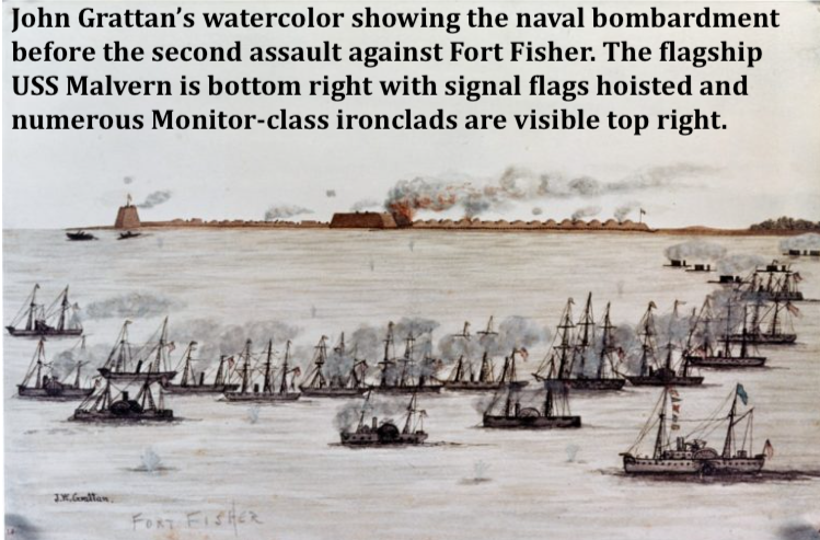 - Participated in two attacks on Fort Fisher as part of Admiral Porter’s squadron.