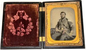 6 – 1/6 Plate Tinted Ambrotype of a Man in a Thermoplastic Case – $225