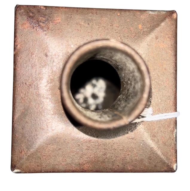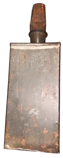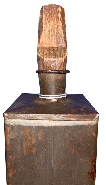 Original Civil War Period Surgeon’s Chloroform Tin Container – Chloroform was utilized by Civil War surgeons to anesthetize wounded soldiers prior to a surgical procedure. During the course of the Civil War, chloroform gradually replaced ether as an incapacitating agent to subdue struggling and suffering patients. The pre-operative administration of Chloroform was accomplished by dripping the liquid onto a cloth, sponge, or paper cone, which was then held over the wounded soldier’s nose and mouth for inhalation. Chloroform was favored over ether because it was non-flammable and required smaller, faster doses, generally taking about nine minutes to induce unconsciousness. This squared, rectangular tin is constructed of gray, sheet iron or “tin”, joined by lead soldering. The circular spout is stoppered by a hand-carved, tubular piece of yellow pine. The tin remains in overall excellent condition.